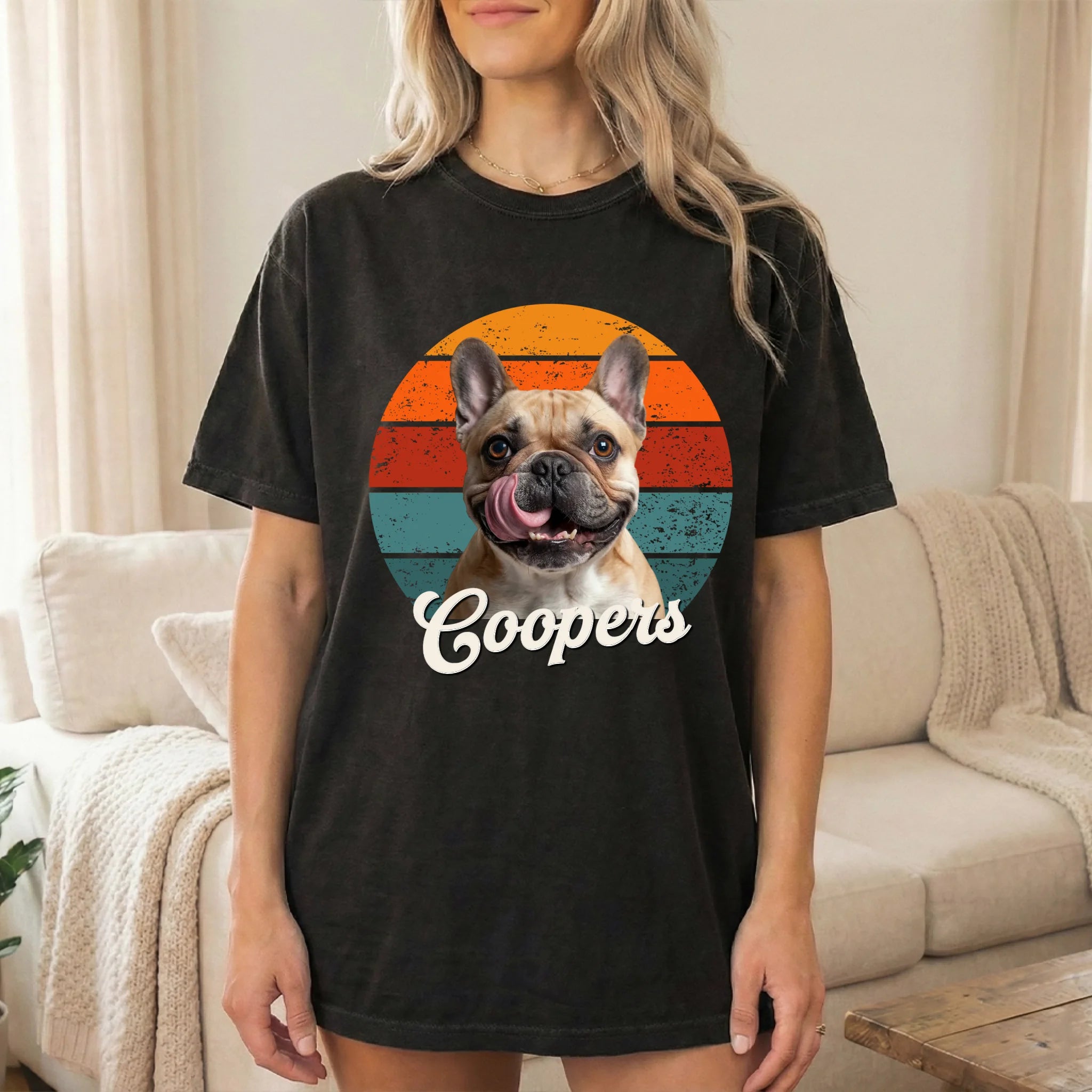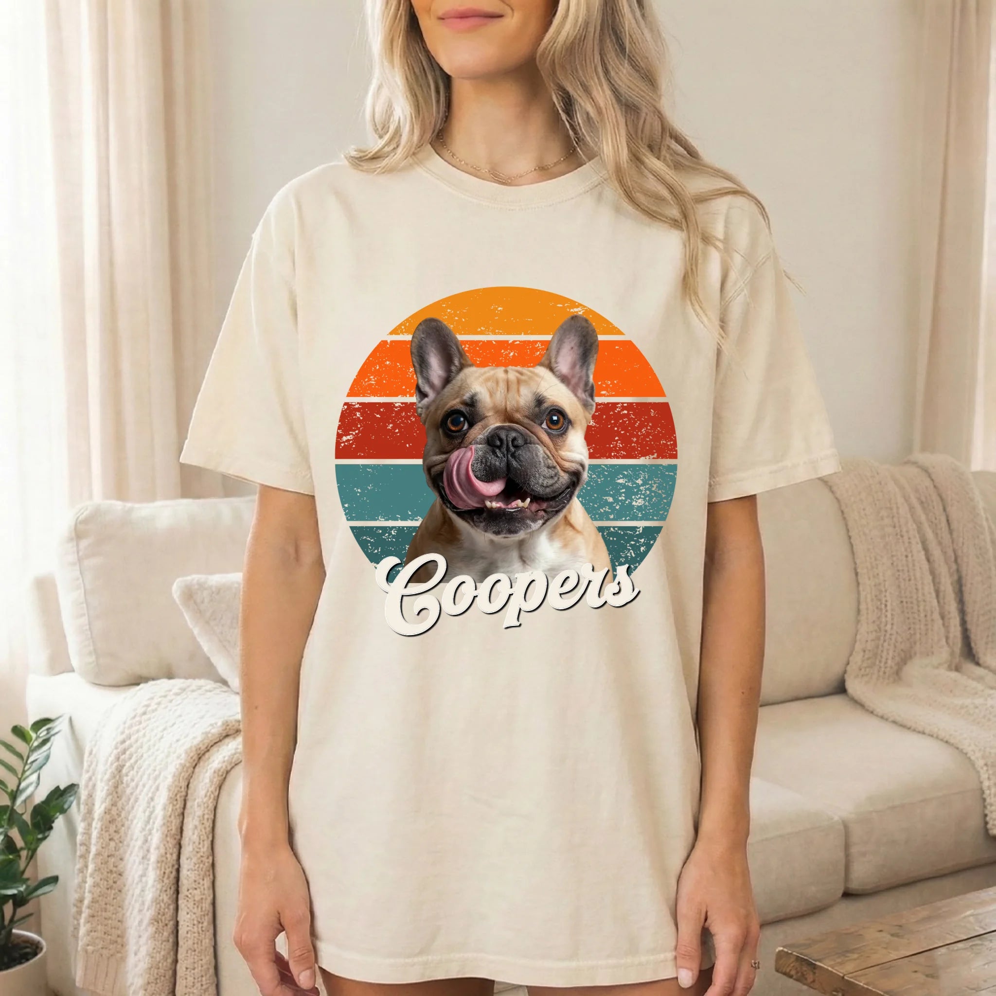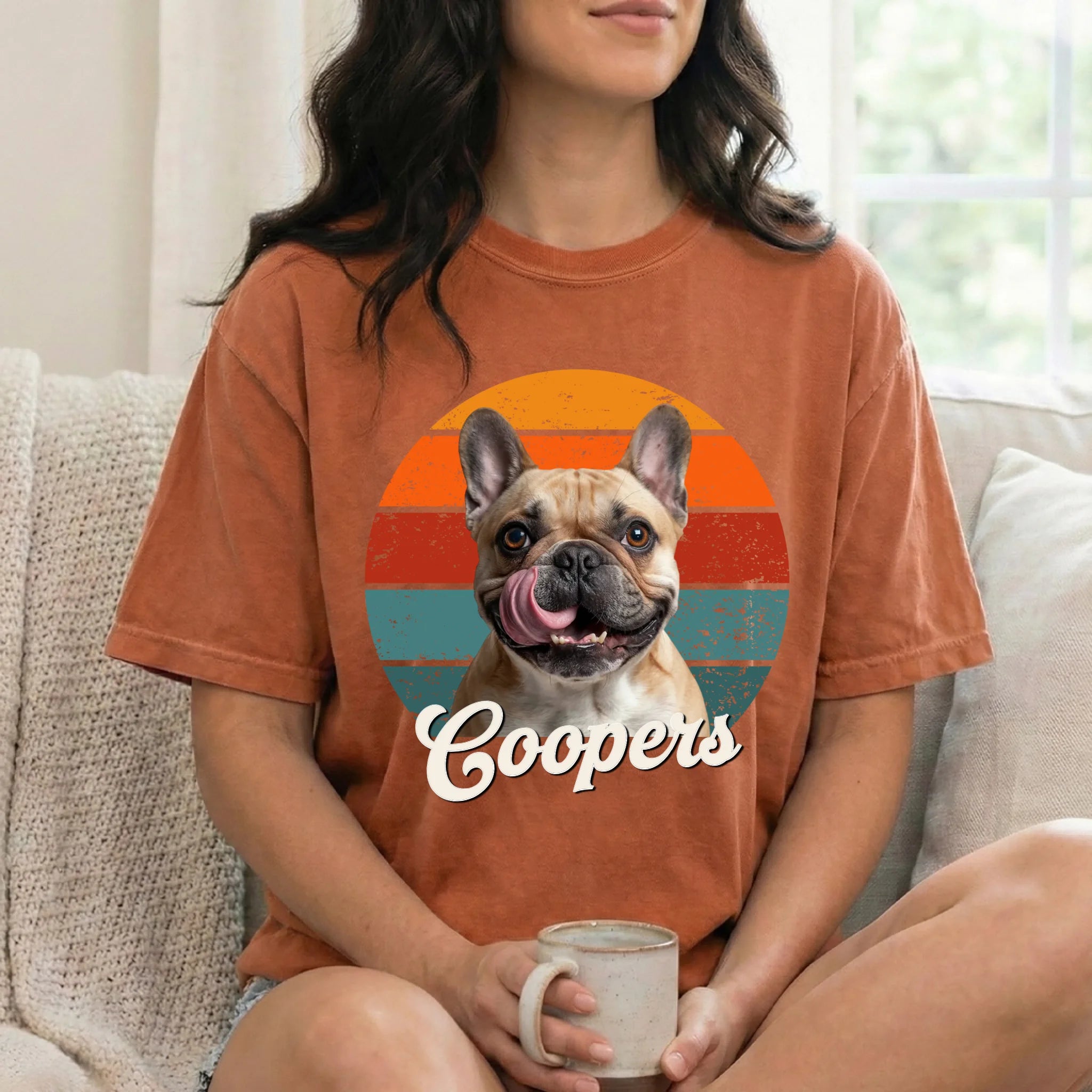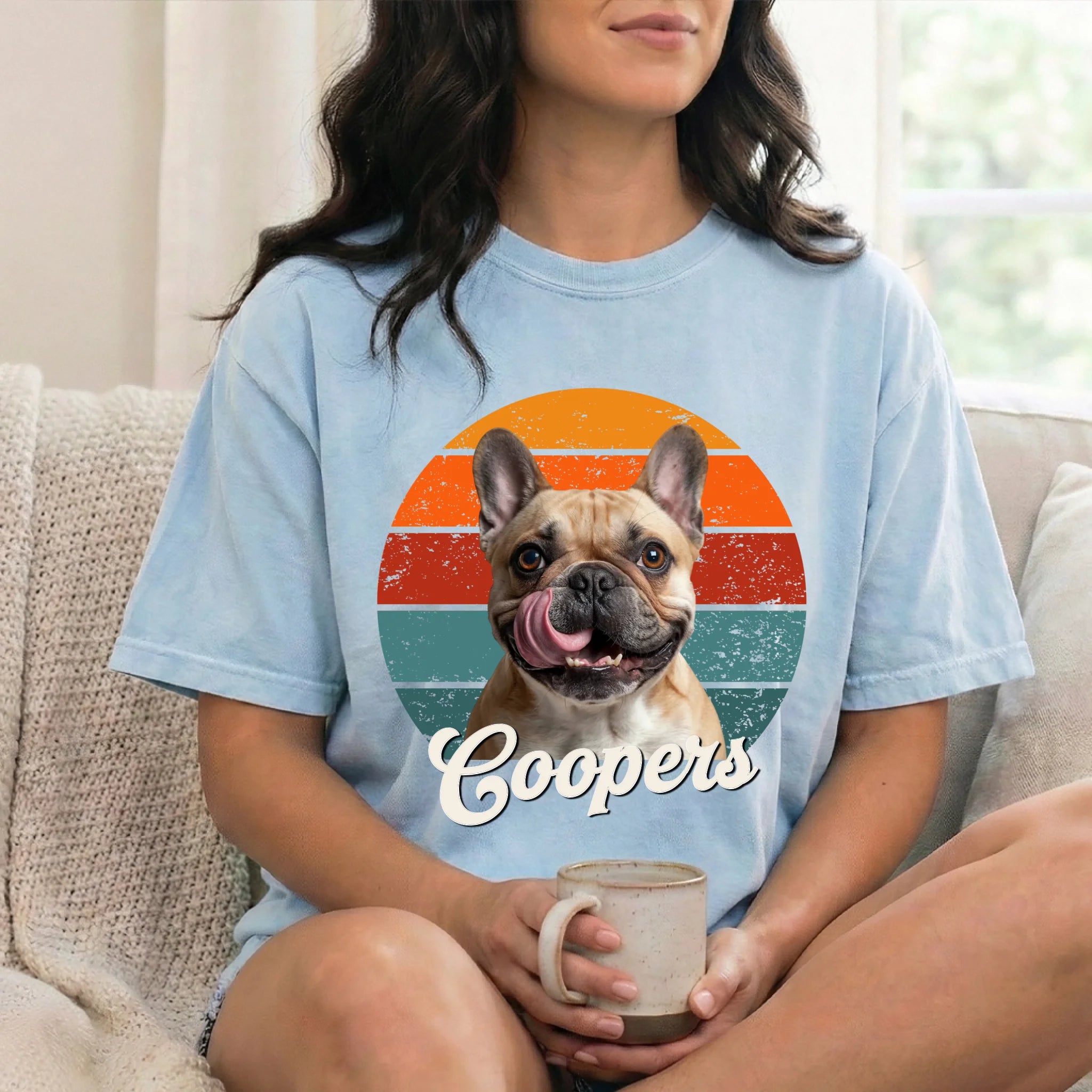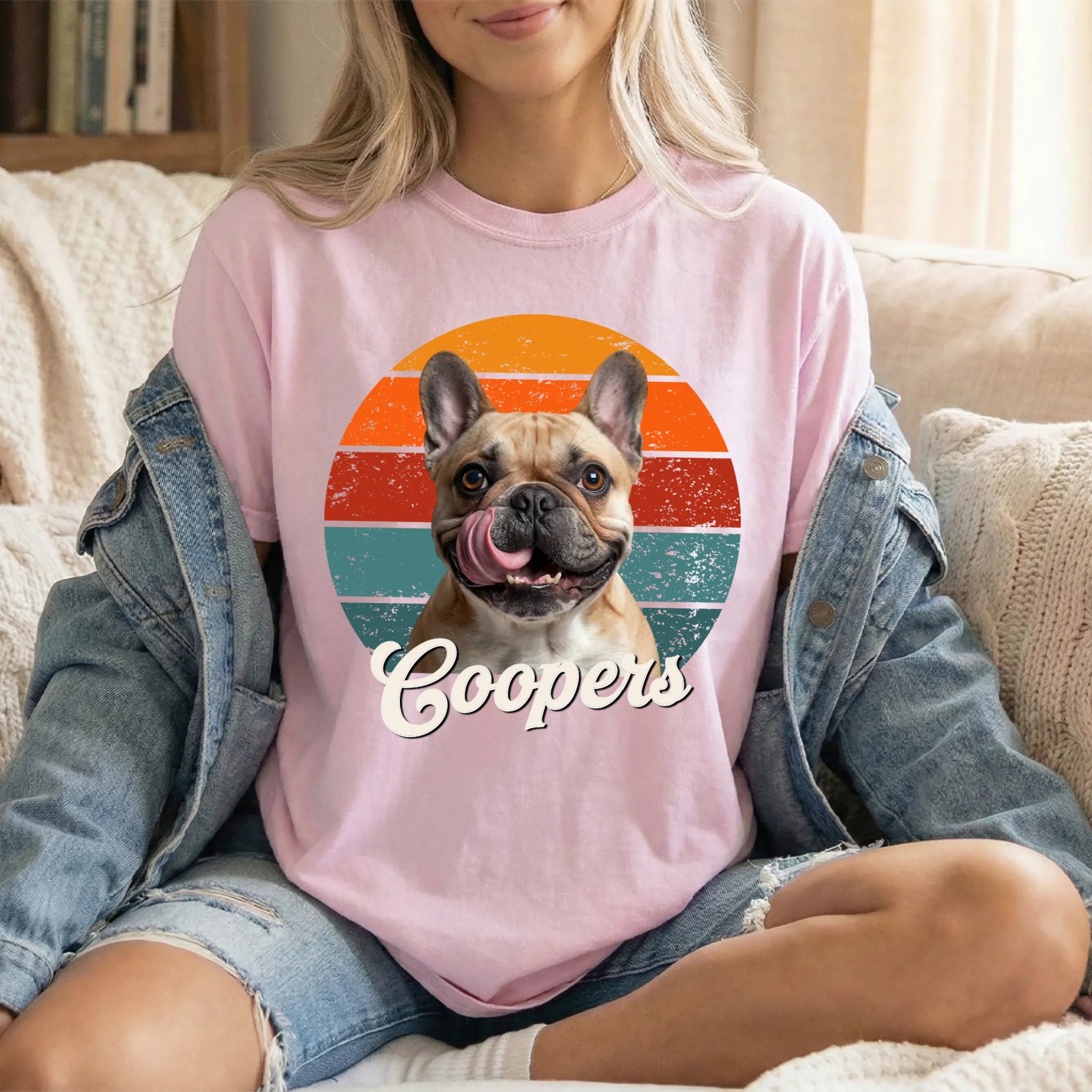 Retro Dog Photo T-Shirt, Personalized Pet Portrait From Photo Shirt, Dog Mom Gift Shirt, Pet Memorial Gift