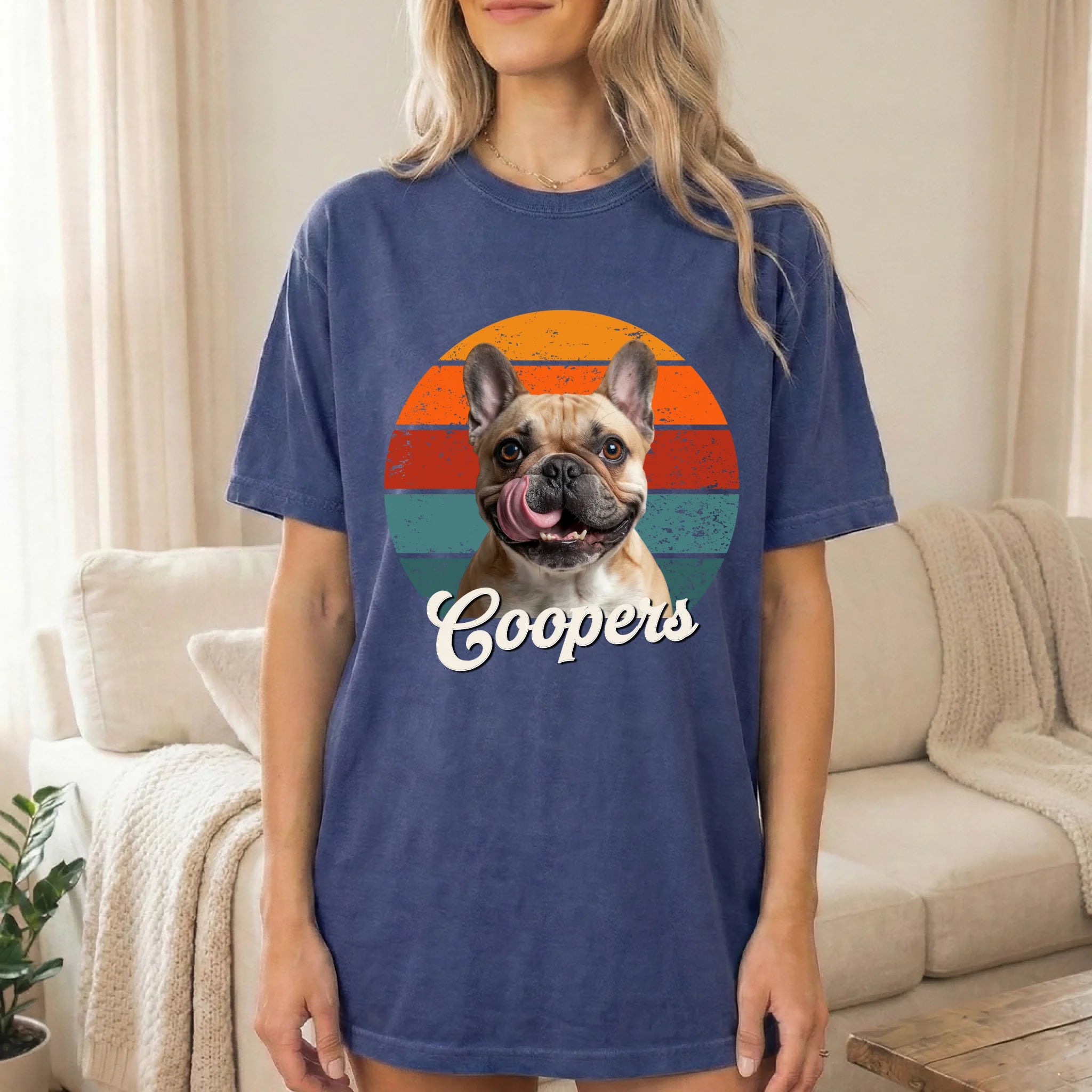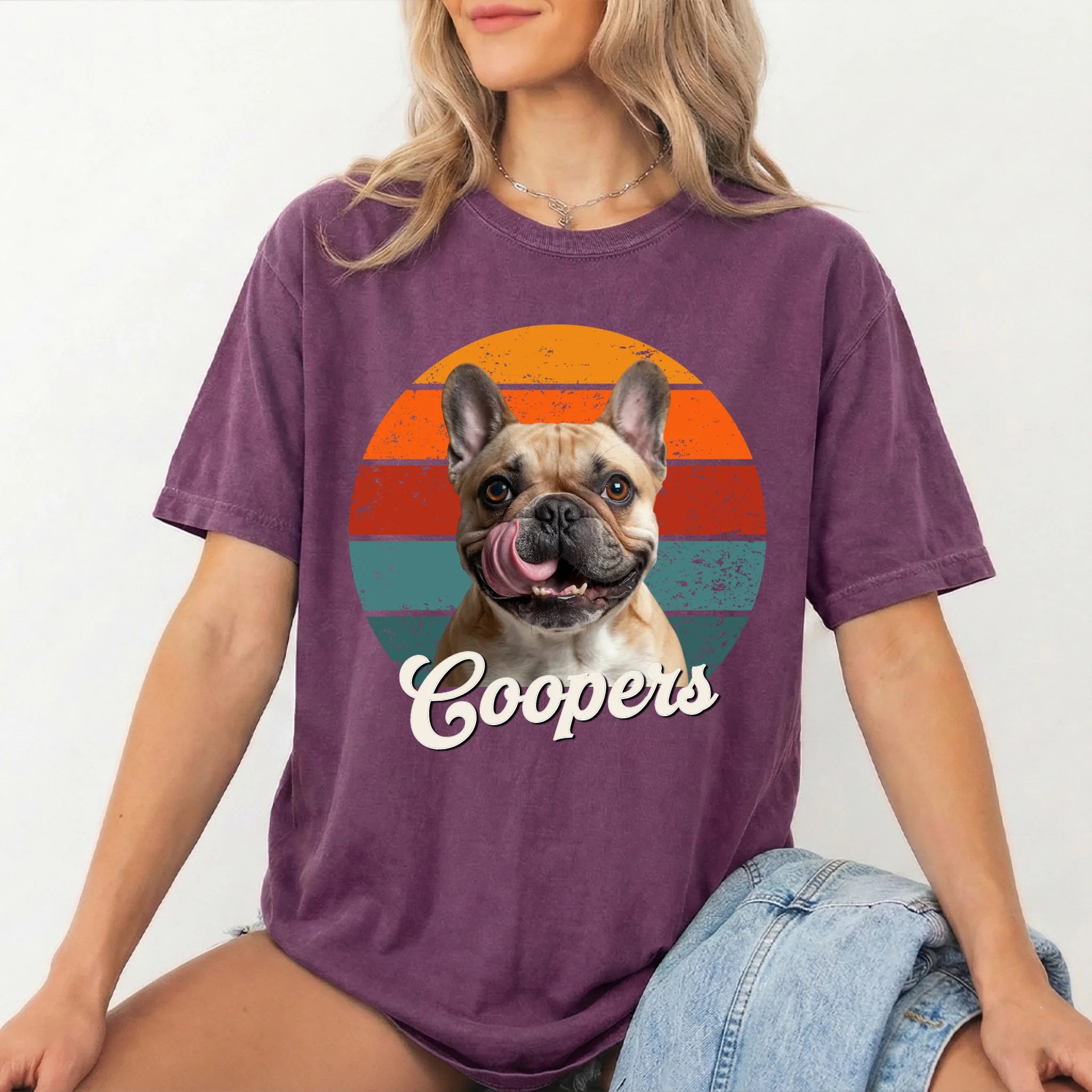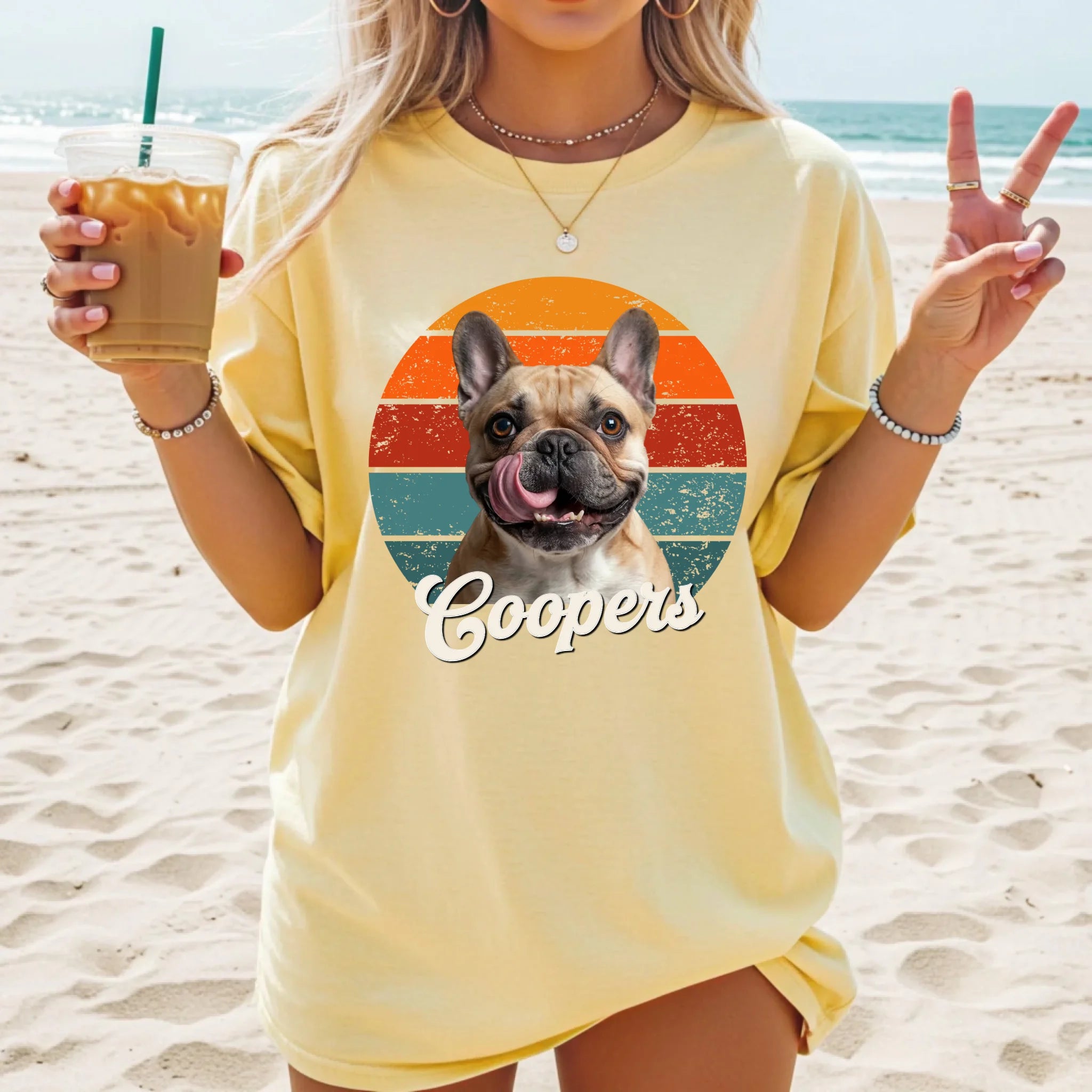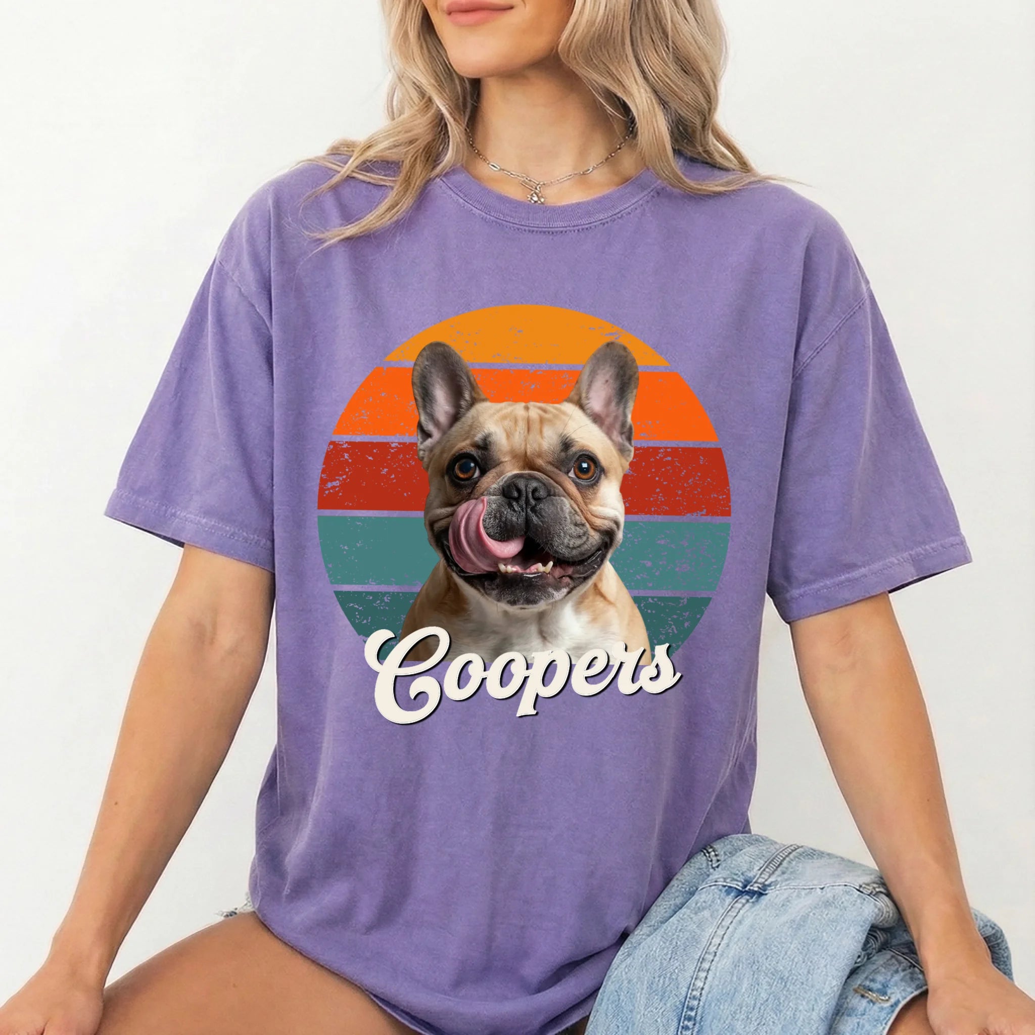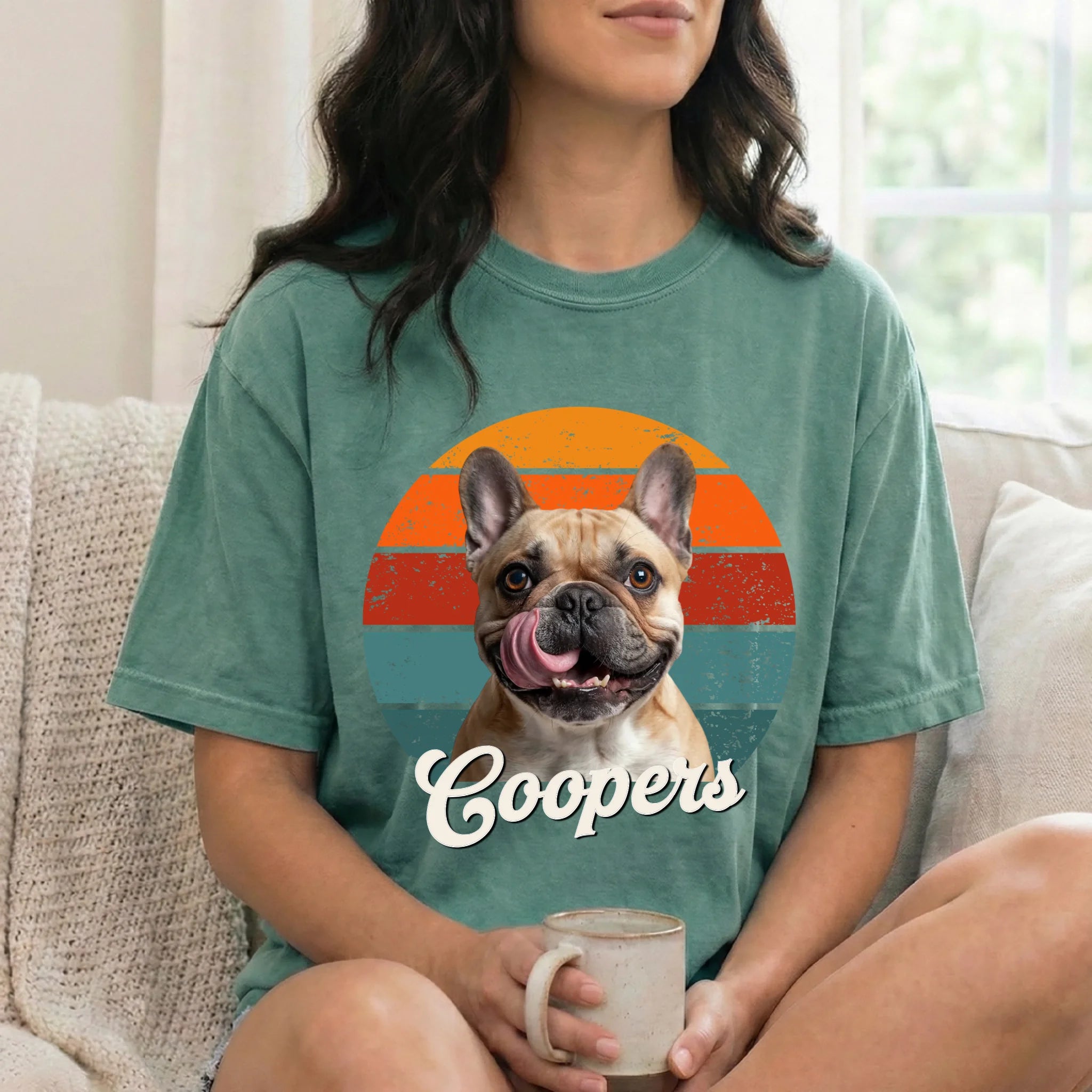 Retro Dog Photo T-Shirt, Personalized Pet Portrait From Photo Shirt, Dog Mom Gift Shirt, Pet Memorial Gift