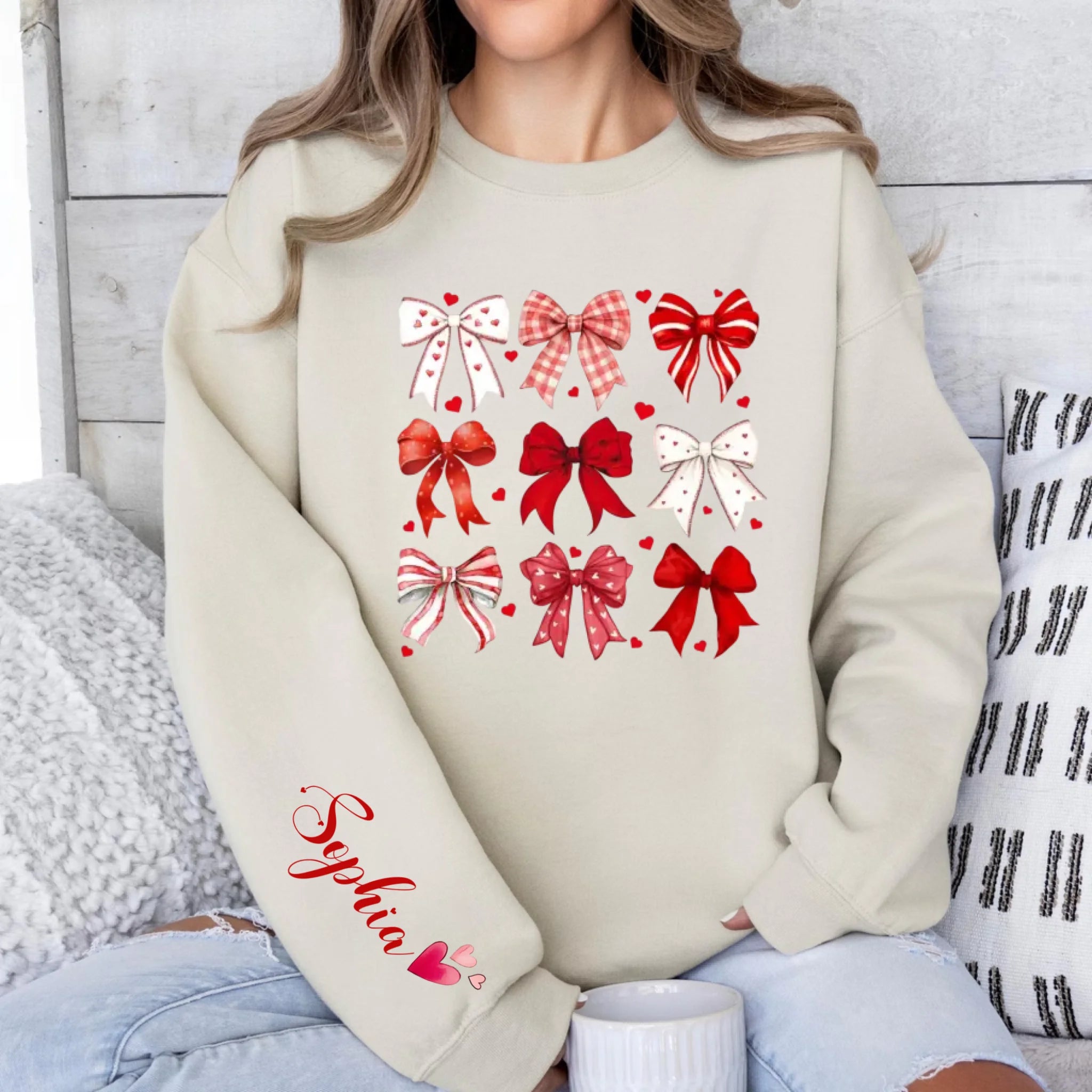 Personalized Coquette Valentine Heart Bow Sweatshirt