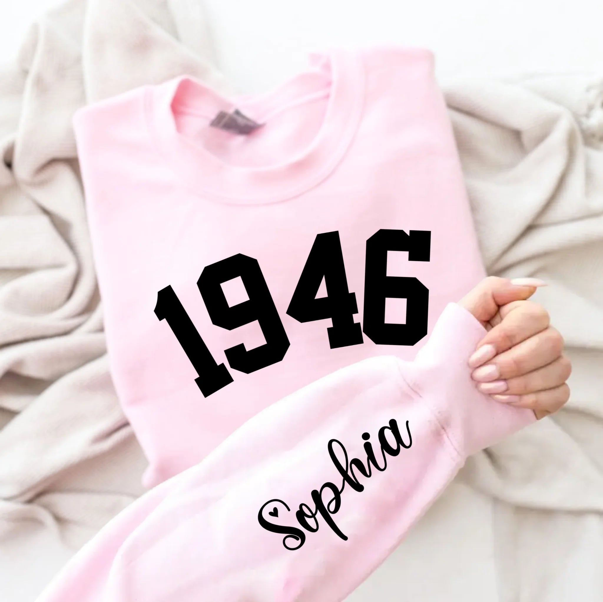 Custom Year 1946 - 80th Birthday Women Sweatshirt with Name on Sleeve