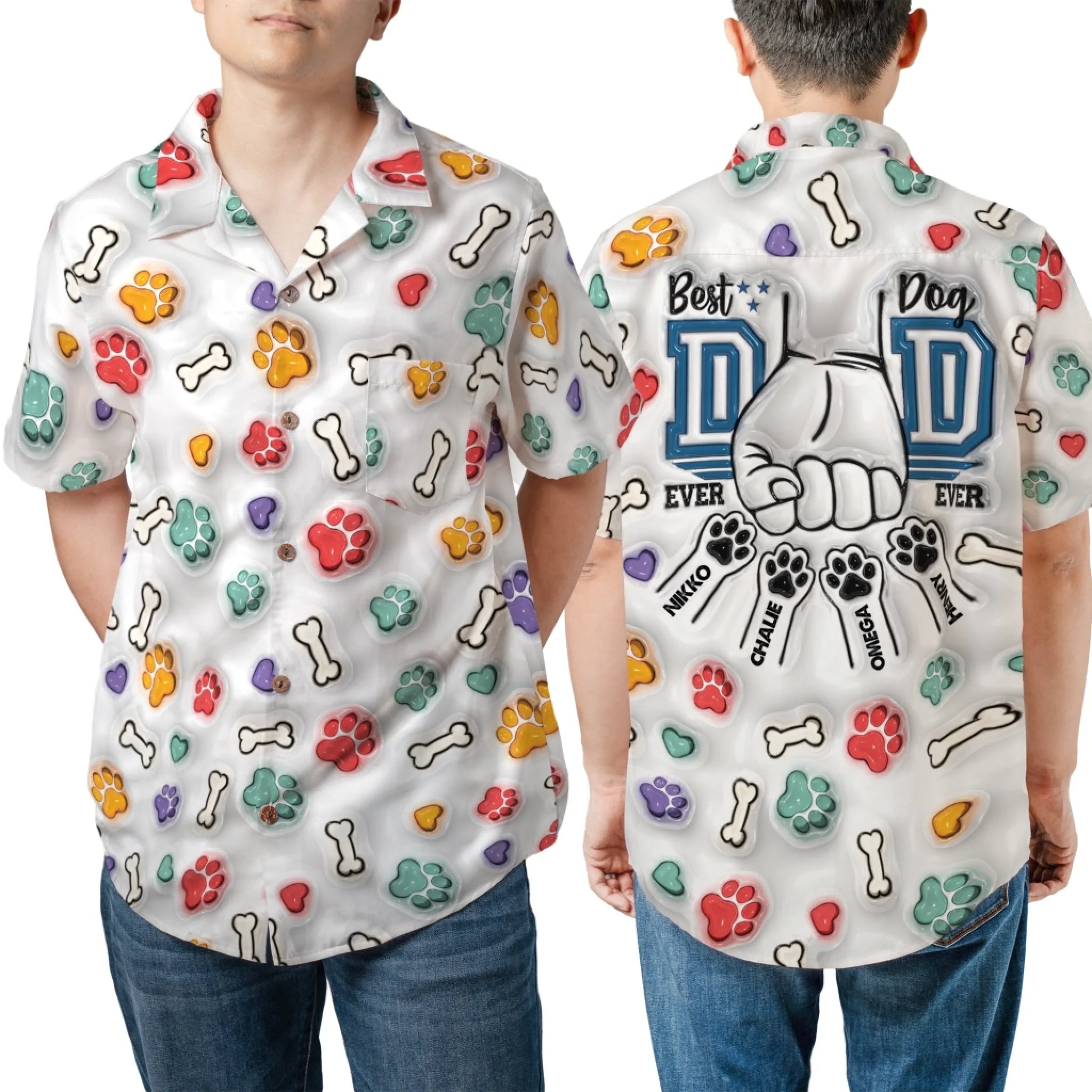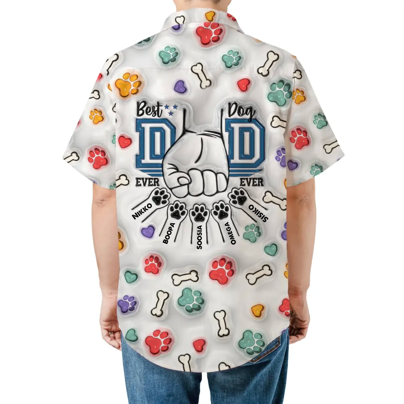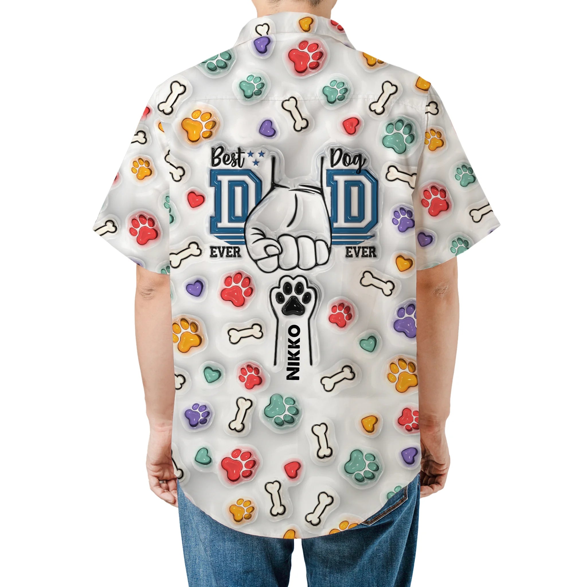 Personalized Best Dog Dad Ever Hawaiian Shirt, Father's Day 3D Inflated Effect Button Shirt for Dad